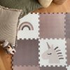 Podlaha v odtieňoch hnedej s motívmi jednorožca a dúhy. sa skladá z 9 častí.