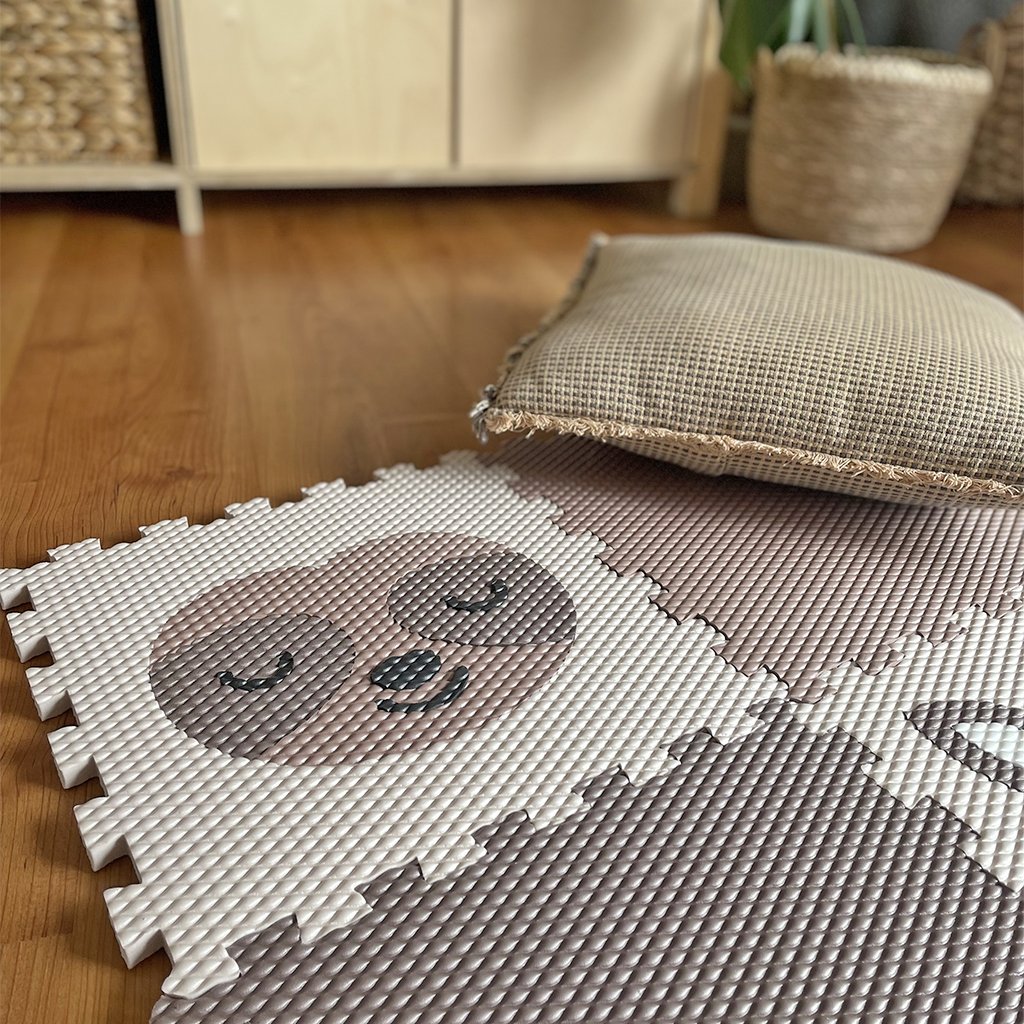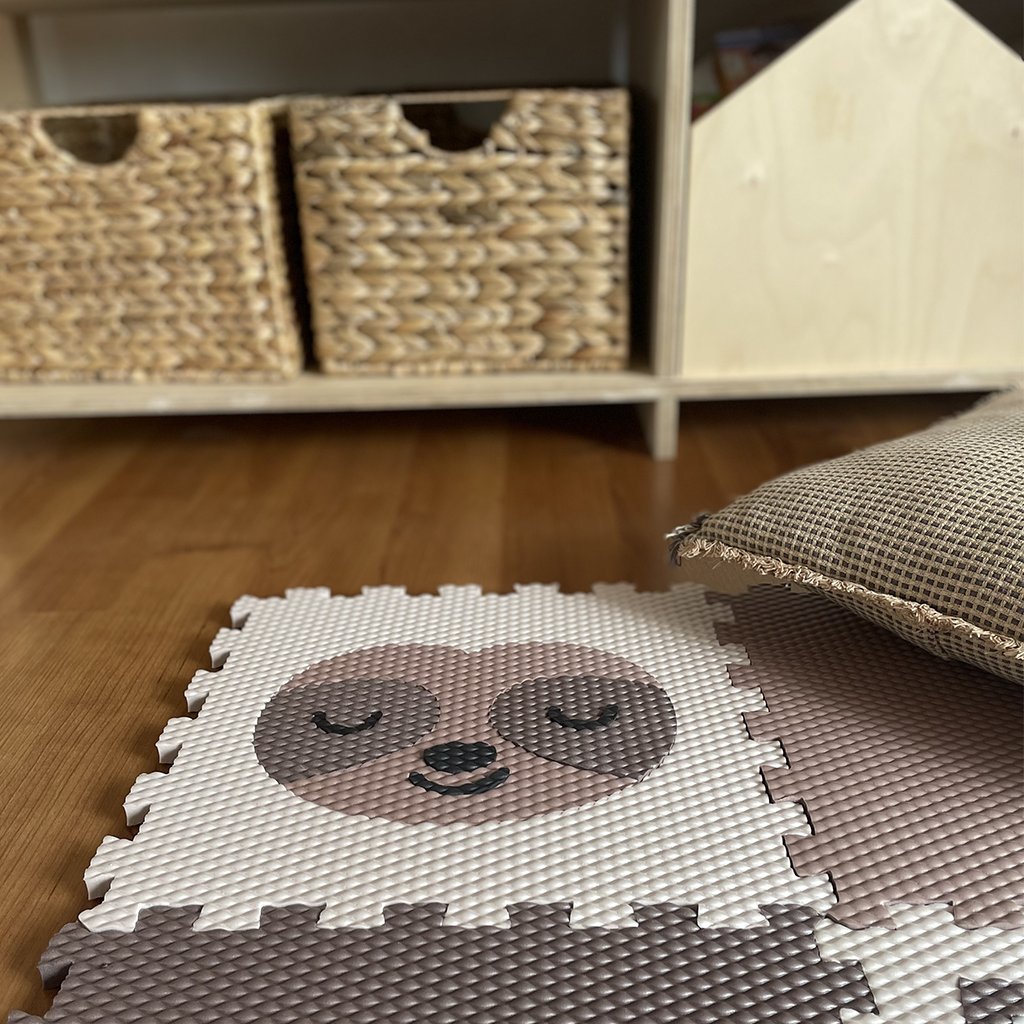 Podlaha s motívmi leňochoda, srnčiatka a jednorožca sa skladá z 9 častí.